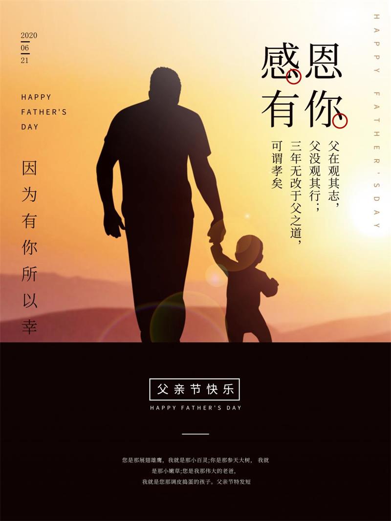 都說父愛如山,父親對(duì)我來說像是一本書,沒有華麗的詞句、卻有道不盡的真實(shí),內(nèi)含滿滿的愛,兒女長(zhǎng)大了、父親卻慢慢的在老去,他需要的、除了兒女們貼心的陪伴,還有對(duì)健康的安全保障。父親節(jié)的禮物您準(zhǔn)備好了嗎?愿天下的父親們:節(jié)日快樂!身體安康!