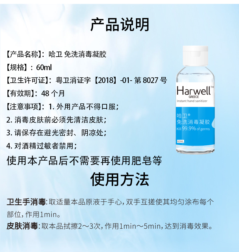 免洗消毒凝膠消毒免洗凝膠60ml