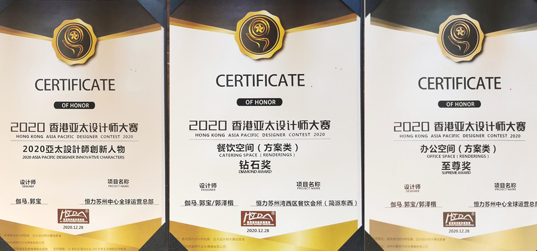 2020年12月28日,2020香港亞太設計師大賽頒獎盛典在深圳設計之都舉行。據悉,此活動由香港室內設計師協會、香港亞太設計師大賽組委會主辦,深圳共贏時代文化傳播有限公司承辦。粵港澳大灣區(國際)發展促進會、英國特許建筑工程師學會、泰國華人青年商會、澳門設計師協會、馬來西亞室內設計協會、泰中僑商聯合會、長沙室內裝飾設計師協會等30多家國際權威協會機構聯合協辦,娛樂圈國際影星吳啟華先生鼎力支持。表彰全球最具創新思想的設計師,規格高、影響力大、公信力強,是實力派設計師每年必爭的國際大獎。