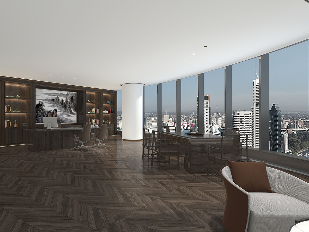 中式格形設計,與現代視覺藝術融合,打造具有豐富空間層次感的視線關系,在感受空間的恢弘尺度和禮序感中,體會古樸含蓄的東方氣象。