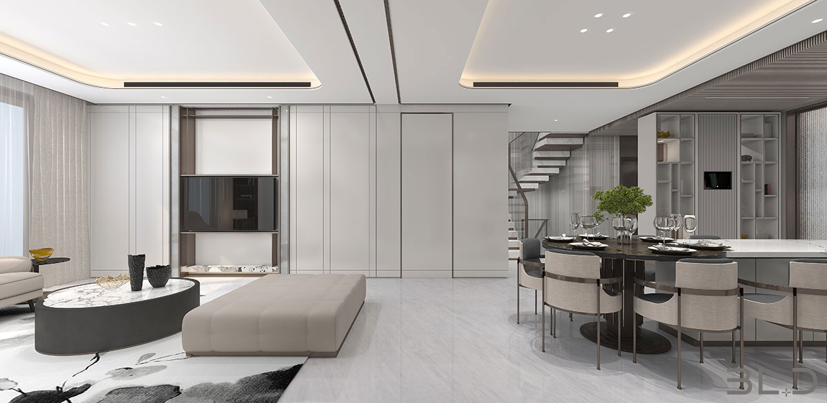 整體氛圍營造簡約溫婉、寬敞通透的感受,開放的視覺效果,擴展空間感的同時使得內心豁然開朗。沒有繁復的造型,材料方面比較純粹。簡潔明了的線條感在組合與承接中凸顯空間品質。